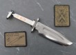 This is Commander #31. Bowie (clip point), sandwich Damast, 17 cm blade. Scout carry sheath on holster paddle. Presented to a sniper instructor in the US Army who has extensive field and operational service.